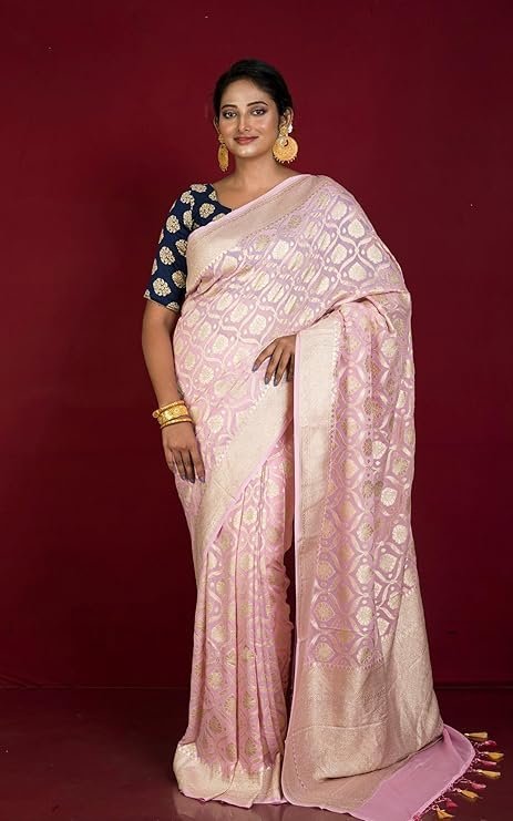 Handwoven Nakshi Floral Brocade Work Self Color Khaddi Georgette Banarasi Saree
