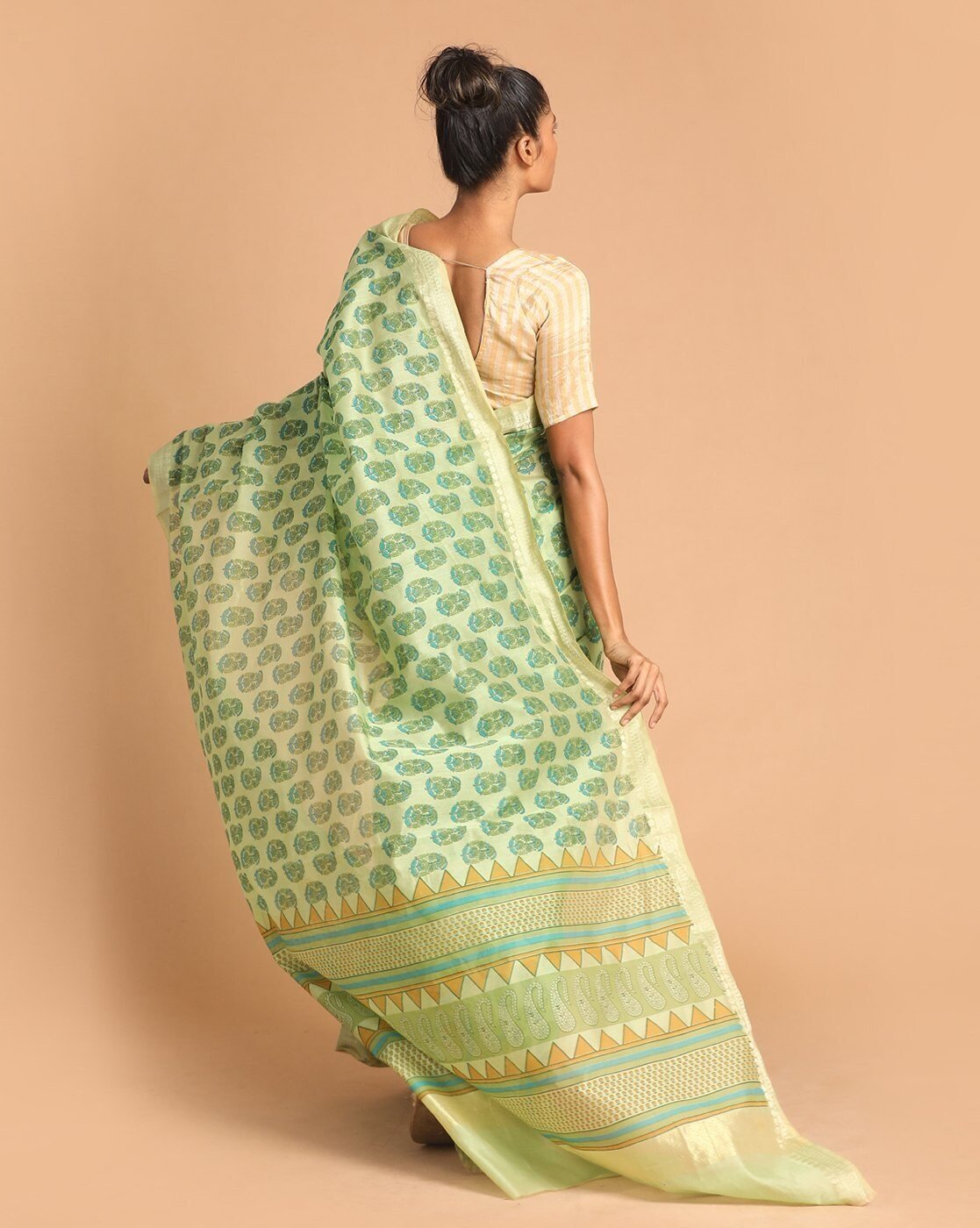 • The last image gives a detailed look of the blouse piece that comes with this saree (The model is wearing a blouse from our in-house wardrobe)