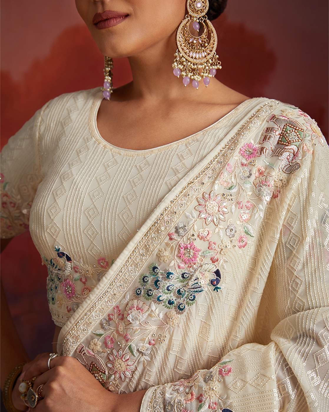 - The last image gives a detailed look of the blouse piece that comes with this saree (The blouse in the images is only for styling purpose)