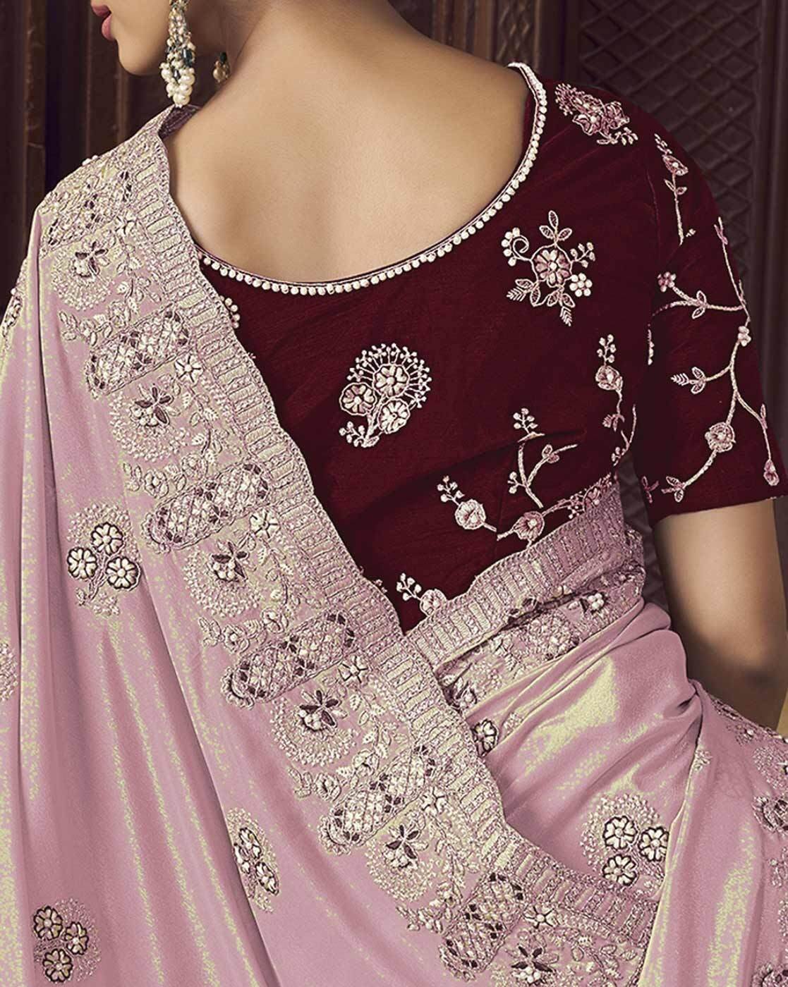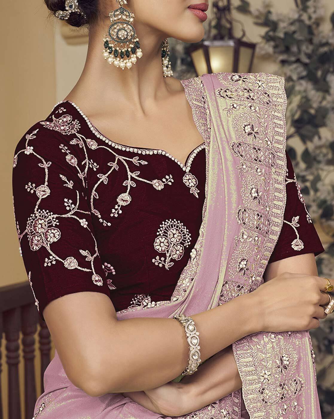 • The last image gives a detailed look of the blouse piece that comes with this saree (The model is wearing a blouse from our in-house wardrobe)